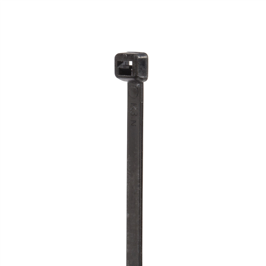 Durable nylon construction with a reinforced head and strap transition for added strength. Bent tip allows faster, easier assembly. Rounded head reduces snags. 2-sided finger-grip G56design helps installer grasp and pull tie snug.